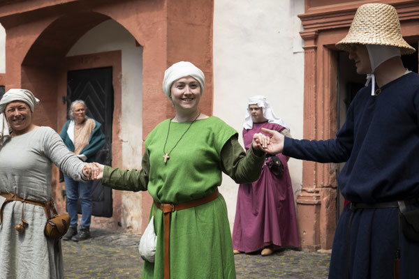 Das Klirren von Metall auf Metall schepperte im Burghof genau wie die Klänge unserer Musici, bei welchen wir unsre Tänze zeigten und das Publikum unterhielten.