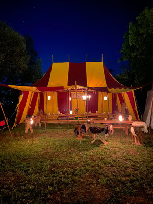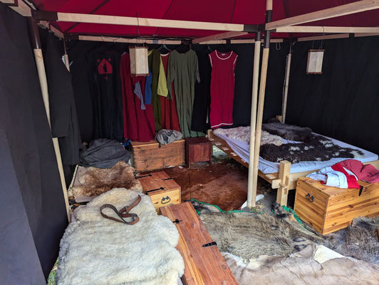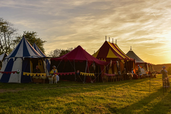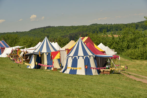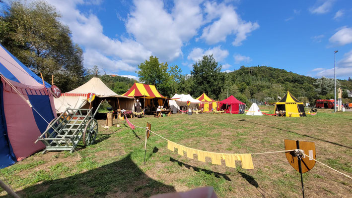 Das Lager der Freien Ritterschaft Baden bietet in seiner Gesamtheit ein buntes Bild eines fahrenden Ritters und seines Gefolges.
